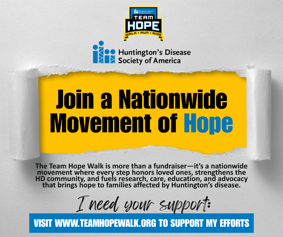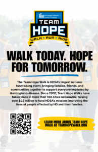 This participant packet is your all-in-one guide to the HDSA Team Hope Walk—filled with event details, fundraising tips, badge challenges, and resources to help you make every step count for families impacted by HD.